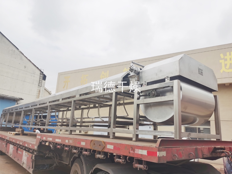 結(jié)片機是一個冷卻結(jié)晶過程,料盤中熔融料與冷卻的轉(zhuǎn)鼓接觸,在轉(zhuǎn)鼓表面形成料膜,通過料膜與股壁間的換熱,使料膜冷卻、結(jié)晶,結(jié)晶的料膜被刮刀刮下,成為片狀產(chǎn)品。氯乙酸結(jié)片機是通過轉(zhuǎn)動的轉(zhuǎn)鼓,以傳熱的方式,將附在轉(zhuǎn)鼓外壁的物料或帶狀物料進行加熱干燥的一種連續(xù)操作的過程。